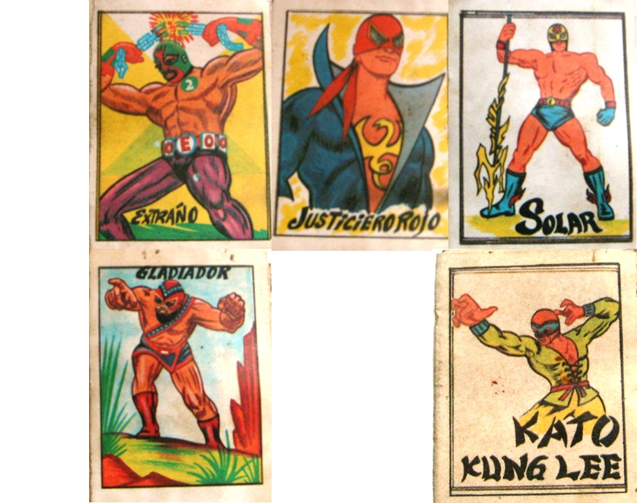 Hoy les pongo algo demasiado personal. En la primaria como ya había platicado antes la salida era el momento mágico donde uno cambiaba barajas, compraba jícamas bañadas en chile, aviones con chicles o cerbatanas con chochitos. Ahí en ese puesto compre una colección de calcomanías de luchadores ficticios que me llamaron la atención en su momento.
